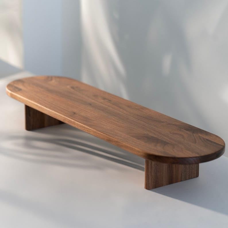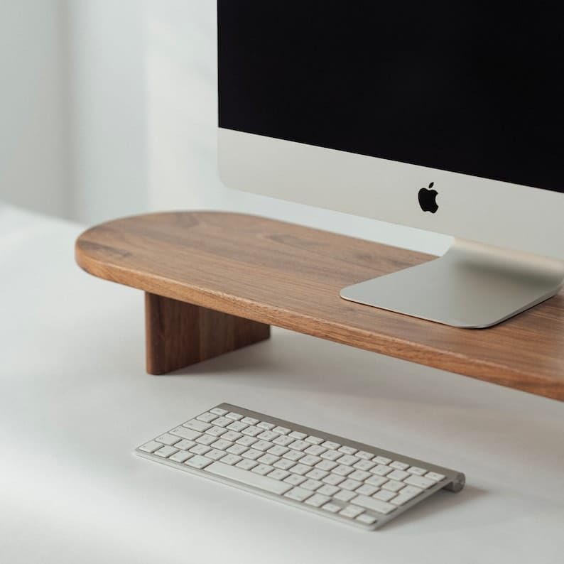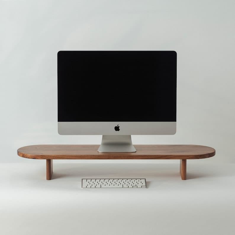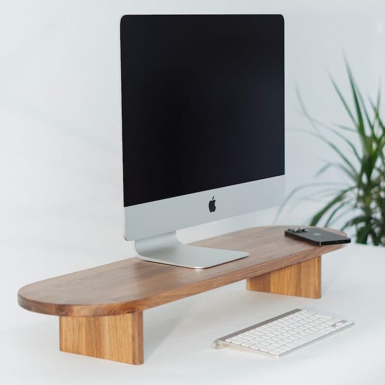 carpentray - Wooden Computer Monitor Stand, Monitor Riser Desk Shelf Desktop Stand TV Riser with Keyboard Storage Desk (66cm, Rounded)