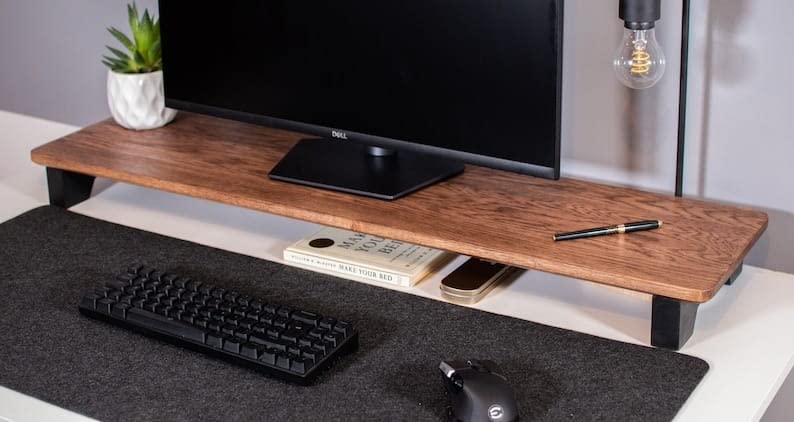 - Monitor riser raises your view level height, so you don't need lower head to view screen, effectively increase sitting comfort.