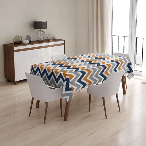 Cartela fabrics - مفرش طاولة قماشي بتصميم عصري لطاولات أنيقة، 1.30 × 2.20 م، أزرق غامق وبرتقالي TC-PR1402F من كارتيلا