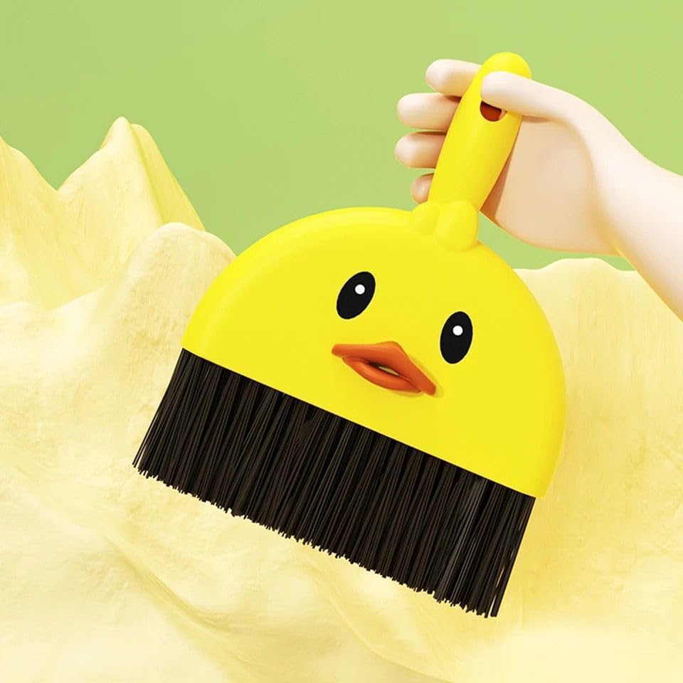 - 🏡 المنتج عبارة عن مجموعة مكونة من قطعة واحدة من المكنسة والمجرفة الصغيرة متعددة الوظائف، مصممة بشكل فريد مع موضوع الرسوم المتحركة Little Yellow Duck الرائع، مما يضيف لمسة غريبة إلى وظيفتها.