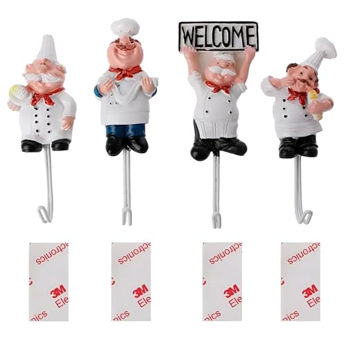 Generic - Cartoon Chef Adhesive Hooks for Wall Storage - Durable Resin Material, Perfect for Organizing Your Kitchen Neatly and Great for Hanging Items (3 Hooks)