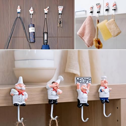 Generic - خطافات لاصقة للتخزين على الحائط على شكل شيف كرتوني - مصنوعة من الراتينج القوي، مثالية للحفاظ على مطبخك منظمًا بتصميم ساحر ومرح، مثالية لتعليق عناصر مختلفة (2 خطاف)، ستانلس ستيل، متعدد