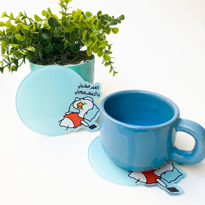 Generic - Cartoon Duck Ceramic Drink Coasters, Light Blue, 12 cm Round
