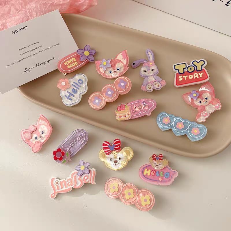 - 1)Cute design:Cartoon hair clips in various cute designs Animals characters and decorative words in pretty pink