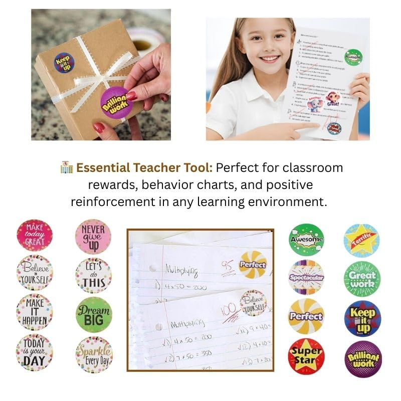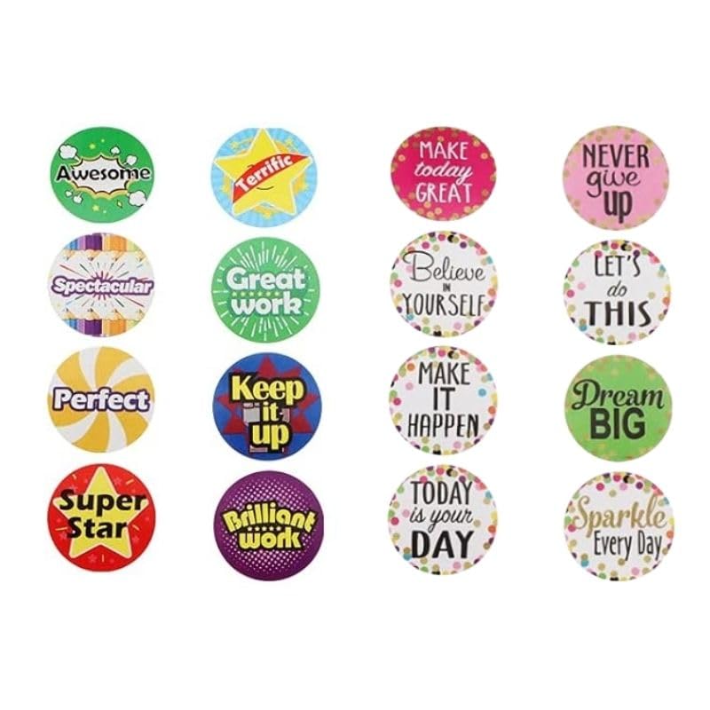 - 🎯 16 Fun Designs: Boost motivation with 32 vibrant, kid-friendly motivation stickers (2 of each design). 📏 Perfect 1-Inch Size: Ideal for teachers—fits standard reward charts, planners, notebooks, and homework assignments.