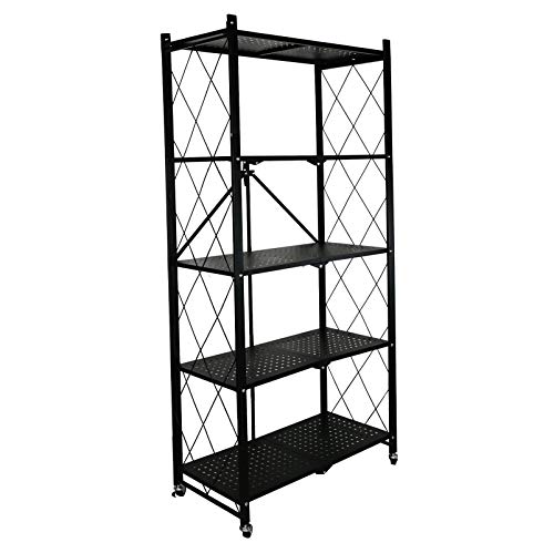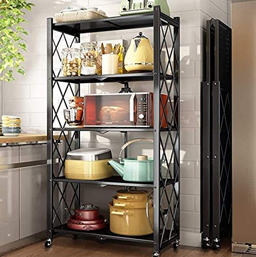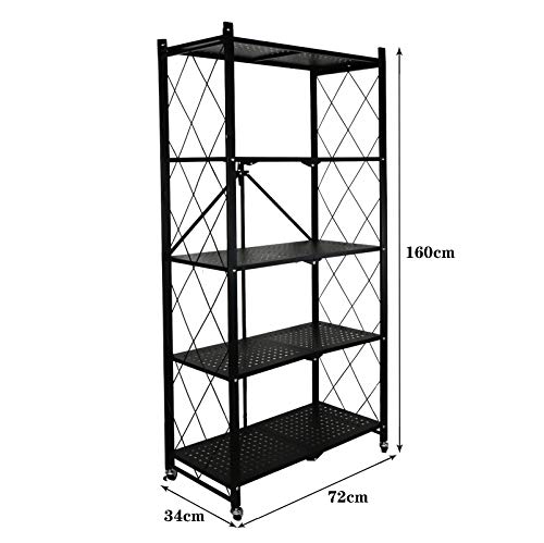 Carts - Carts CXIA 5-Tier Kitchen Shelf Units,Home Heavy Duty Rack, Office Wide Foldable Metal Rolling Storage with Caster Wheels Plant Stand -72X34X160cm(Color:Black)
