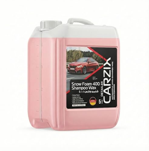 CARZIX - سائل غسيل السيارات سنو اكشن بالشمع من كارزيكس - لمعان عالي وطارد للغبار - منظف شديد التحمل لجميع الاسطح) مركز 1:400 - 5 لتر - (غسيل سيارات مركز)