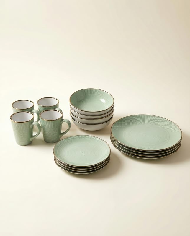 - مجموعة كاملة من 16 قطعة: تتضمن 4 أطباق عشاء و4 أطباق حلوى و4 أوعية و4 أكواب، مما يوفر خدمة كاملة لأربعة أشخاص لتناول الطعام اليومي أو المناسبات الخاصة