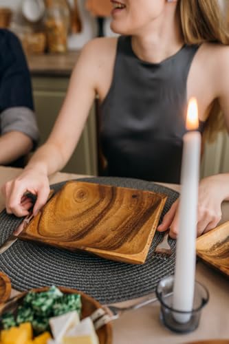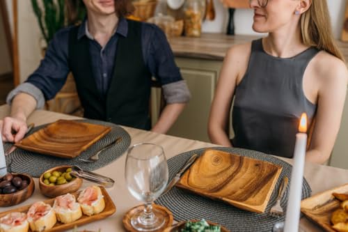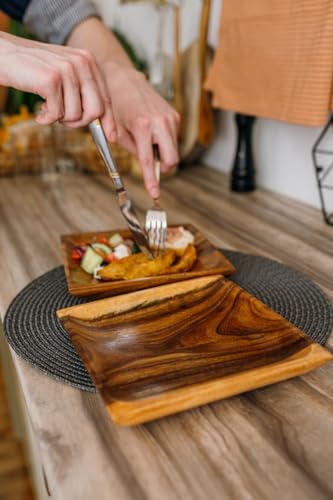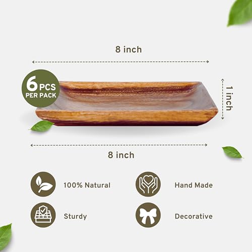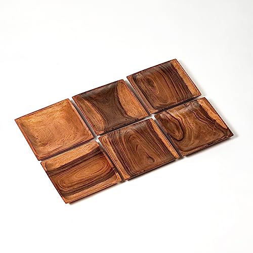 Casa/Legno - Handcrafted 8 Inch Square Wooden Plates, Perfect Home Decor for Serving Fruits, Appetizers and Salad. (Set of 6)