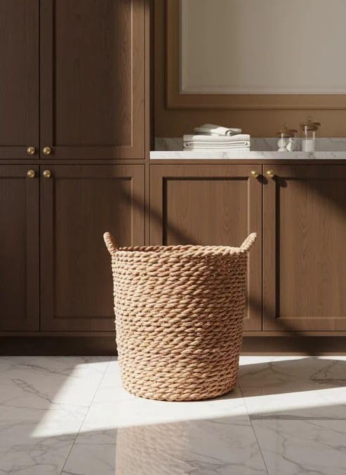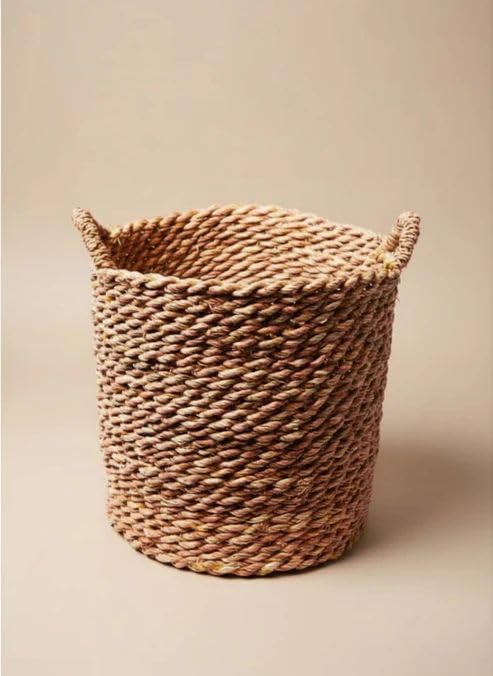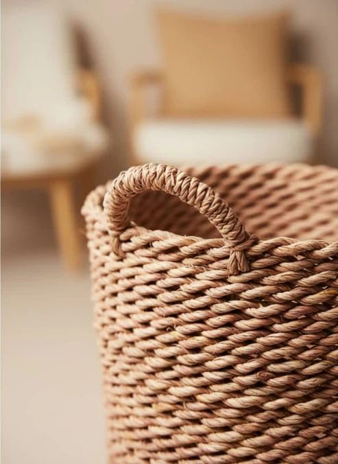 Generic - CasaHome Hand-Woven Natural Fiber Storage Basket with Handles, Rope Weave Organizer, Honey Natural Straw – Coastal Boho Décor