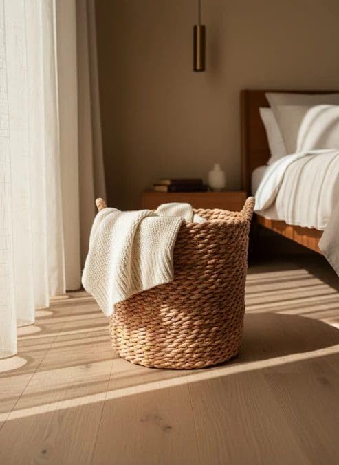 - Open-top, breathable storage for throws, toys, towels, or light laundry.