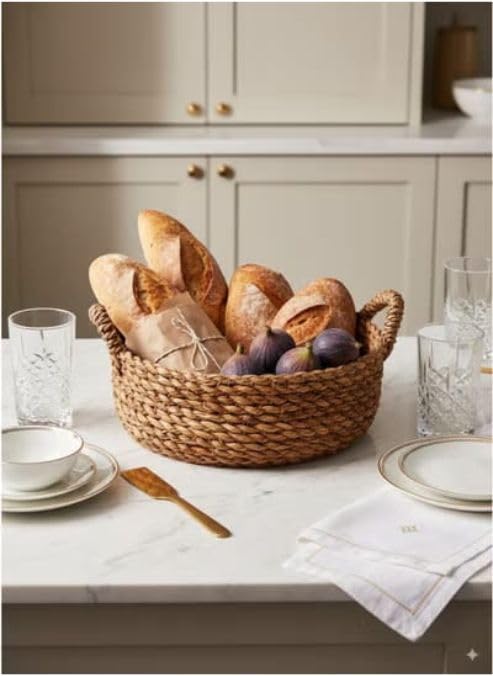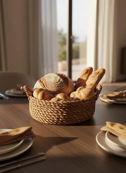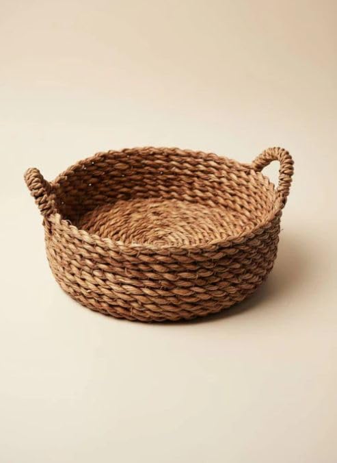 Generic - CasaHome Handwoven Round Natural-Fiber Basket with Handles, Honey Natural – Storage & Serving Tray for Bread, Fruit, Entryway & Living Room
