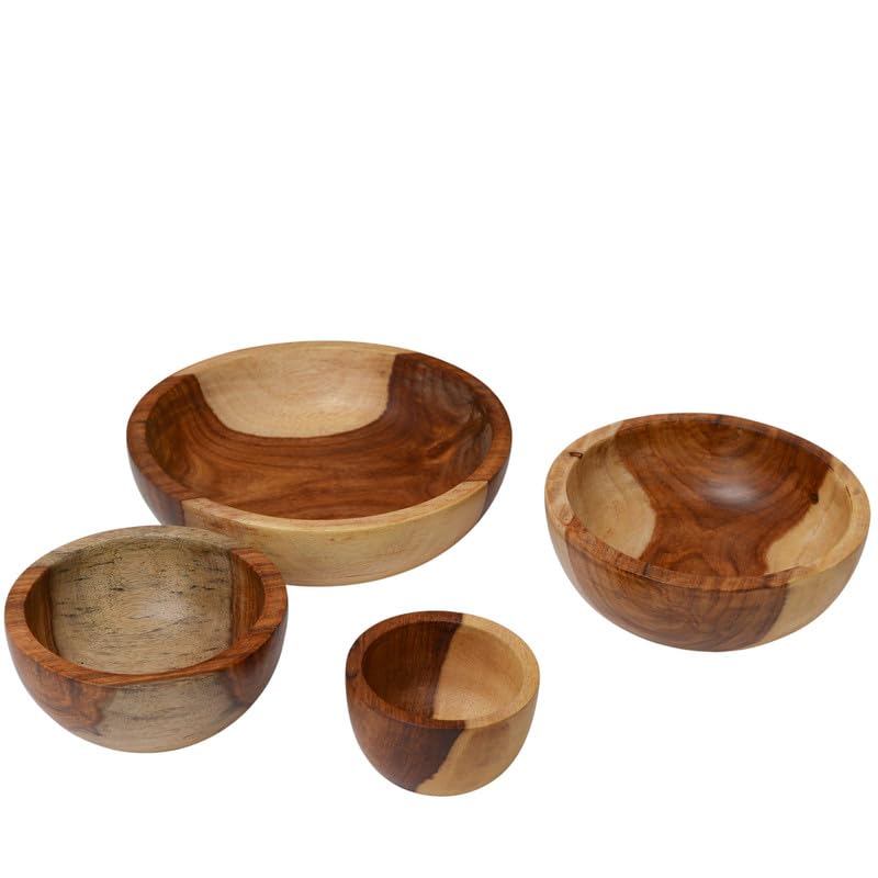Generic - CasaHome Wooden Serving Bowls Set, 4-Piece Nesting Solid Hardwood with Food-Safe Satin Oil Finish, Natural Honey-Walnut Woodgrain for Salad, Snacks & Hosting