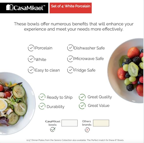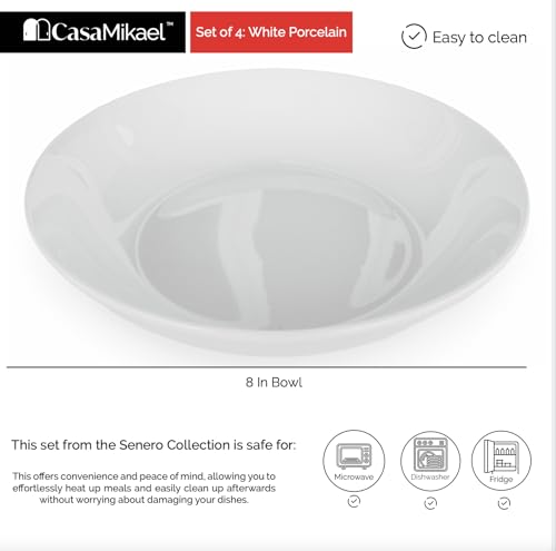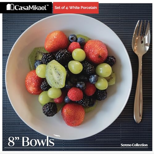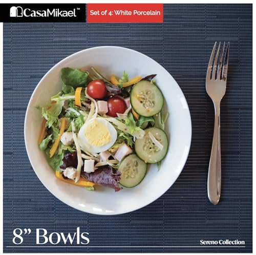 CasaMikael - SET OF 4 – 8″ WHITE PORCELAIN BOWLS – SERENO COLLECTION