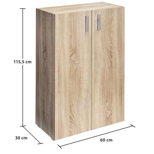 Casaria - وحدة أدراج ديوبا فيلا مكونة من 3 أقسام وبابين مقاس 1.15 م × 60 سم × 31 سم، خزانة ملفات خشبية متعددة الأغراض من خشب البلوط من كاساريا