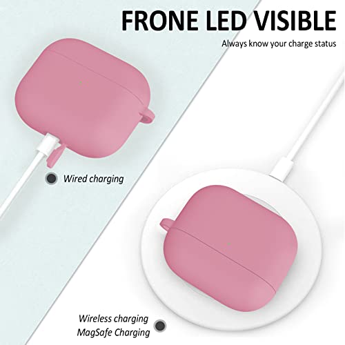 HATALKIN - جراب حماية لسماعات ايربودز 3 2021 الجيل الثالث، من السيليكون الممتاز لتوفير حماية كاملة لسماعات الايربودز الجيل الثالث مع سلسلة مفاتيح، بينك، زهري