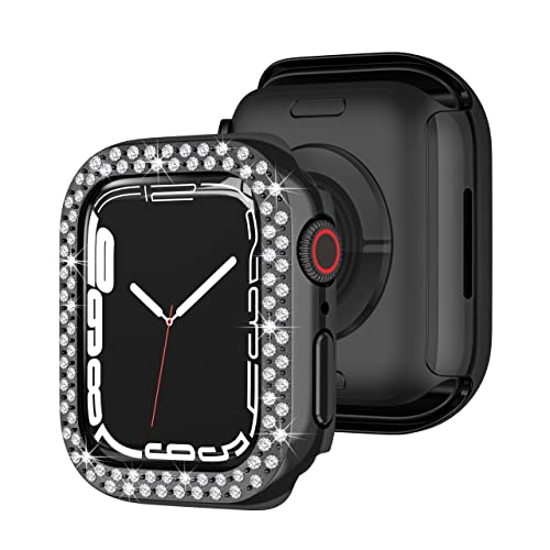 通用 - حافظة متوافقة مع ساعات ابل الفئة 7 41 ملم 45 [بدون شاشة حماية] غطاء واقٍ من البولي كربونات مرصع بالكريستال الماسي لساعة اي-ووتش اسود حجر الراين