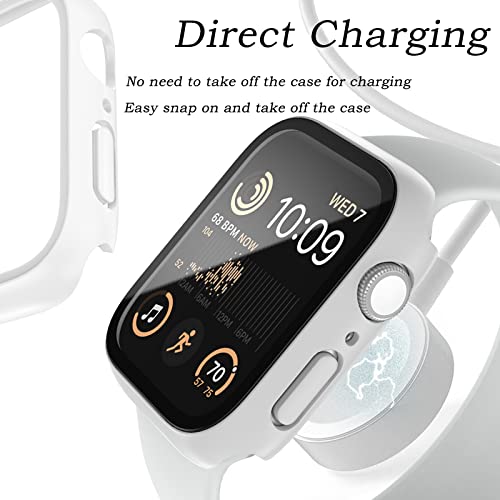 HAJSLU - Case Compatible with Apple Watch Series 3 2 1 38mm/42mm PC Bumper with Tempered Glass Screen Protector Matte Solid Color Hard Cover (White, 38mm)