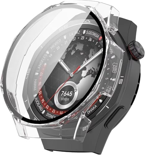 ELMO3EZZ - Case Compatible with Huawei Watch GT 5 Pro 46mm, PC + Screen Tempered Film Integrated, Anti-Fall, Watch Cover Compatible with Huawei GT 5 Pro 46mm (Clear)