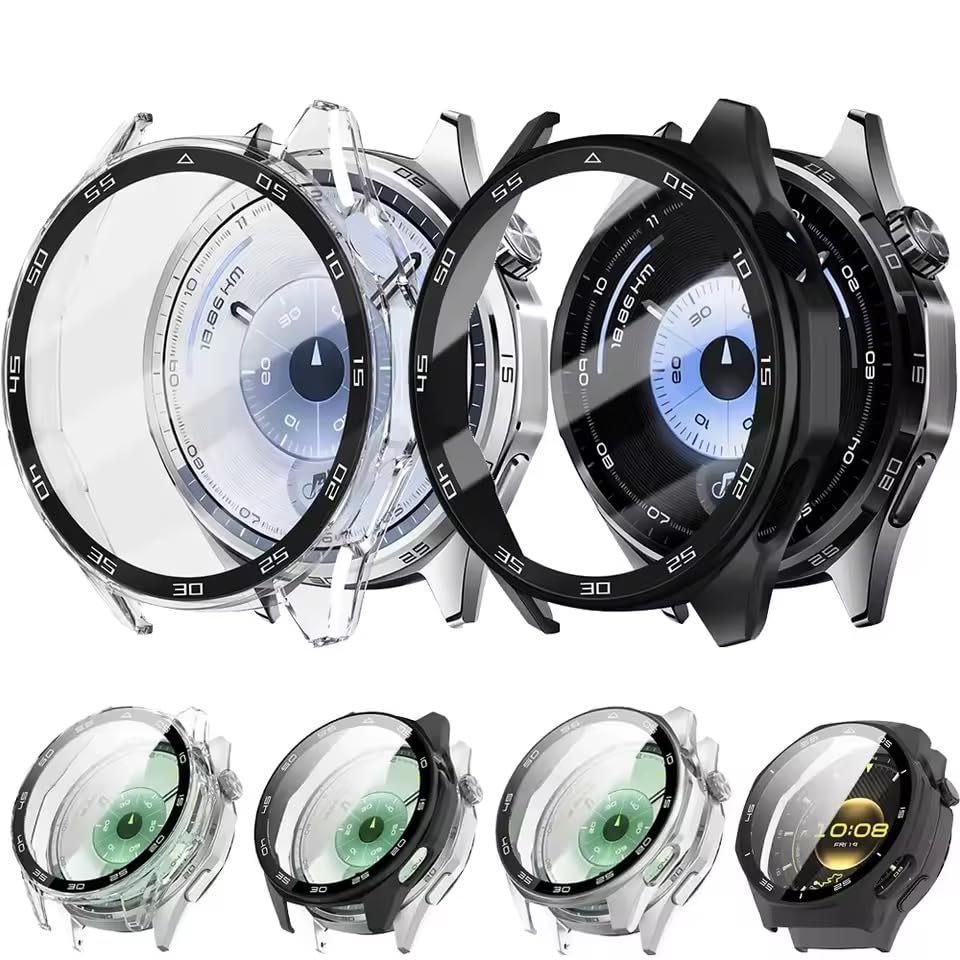 فكرة - Case Compatible with Huawei Watch GT6 46mm, PC + Screen Film, with Scale, Scratch-Resistant, All-Inclusive Protective Case Compatible with Huawei Watch GT 6 46mm (Black/scale style)