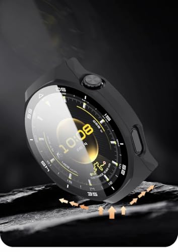 فكرة - Case Compatible with Huawei Watch GT6 Pro 46 mm, PC + Screen Film, with Scale, Scratch-Resistant, All-Inclusive Protective Case Compatible with Huawei Watch GT6 Pro 46 mm (Black W Scale)