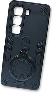 Generic - Case Compatible with INFINX HOT50 4G Dual Layer Protective Shockproof Hard Armor Cover with 360° Rotating Finger Ring Kickstand and Car Magnetic Mount (Black)