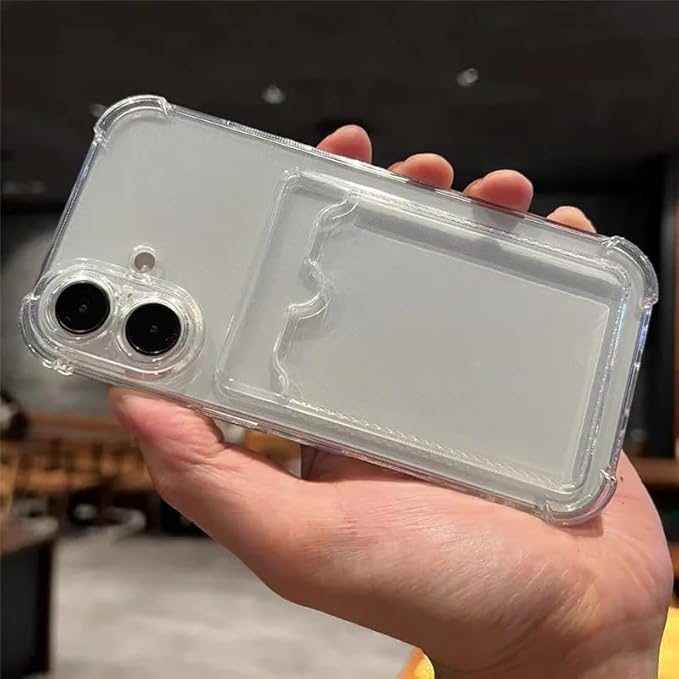 ELMO3EZZ - جراب حماية متوافق مع موبايل آيفون 16 برو مع حامل كروت بتصميم رفيع وناعم من البولي يوريثين الحراري ممتص للصدمات ومضاد للخدش
