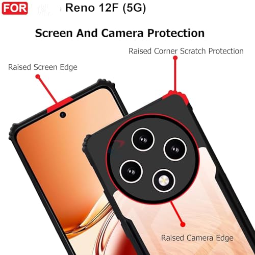 Generic - جراب متوافق مع اوبو رينو 12f (متوافق مع جراب اوبو رينو 12f) شفاف مضاد للخدش والصدمات لحماية كامل الجسم للكاميرا باطار ناعم (اسود)