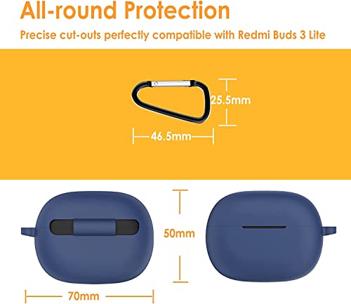 Generic - Case Compatible with Xiaomi Redmi Buds 3 Lite, Soft Case Cover Silicone Protective Bag with Carabiner - Dark Blue