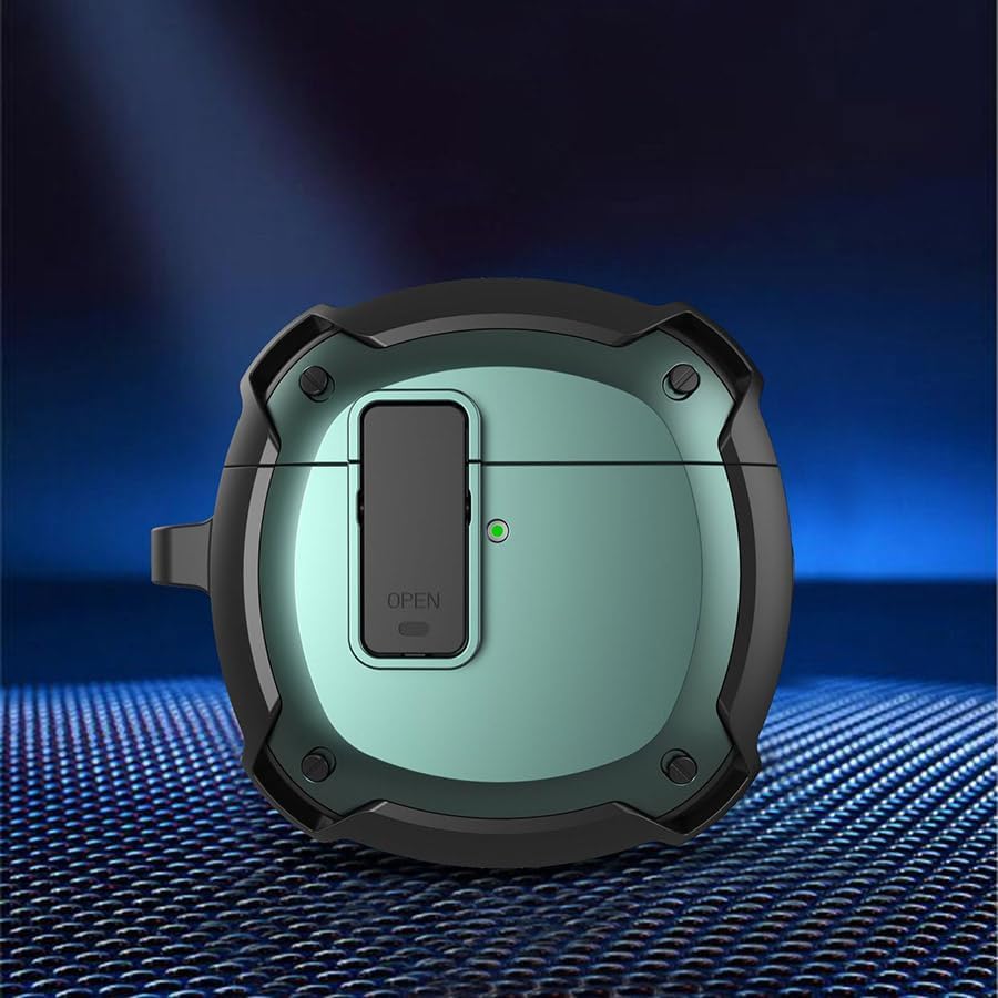 ELMO3EZZ - Case Cover Compatible For Huawei Freebuds 4, Freebuds 4 True Wireless Earbuds, Earphones Skin Cover, Protective Carrying Case with Keychain Hook, Charging Port Accessible (Black @ Green)