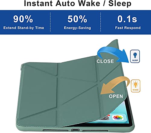 Generic - جراب ايباد ابل 2022 (الجيل العاشر)، مقاس 10.9 بوصة مع حامل قلم، زوايا رؤية متعددة 5 في 1، خاصية النوم/الاستيقاظ التلقائي، ظهر مرن ناعم، وظيفة شحن قلمين (أخضر)