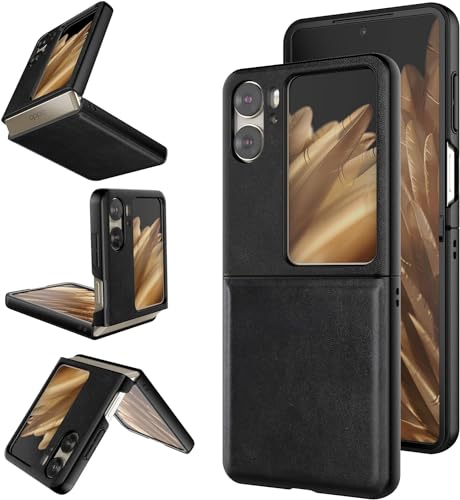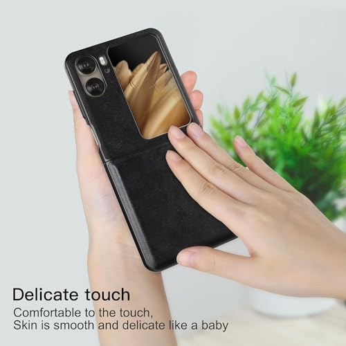 ELMO3EZZ - Case for Find N2 Flip Mobile Phone Case, Leather Case Skin Feel Bumper for Oppo Find N2 Flip (Black)