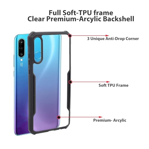 Generic - جراب لموبايل هواوي P30 لايت، [مضاد للخدش] شفاف مضاد للصدمات ومضاد للخدش لحماية الكاميرا بالكامل غطاء اطار مرن (متوافق مع جراب هواوي بي 30 لايت) (اسود)