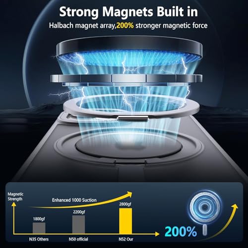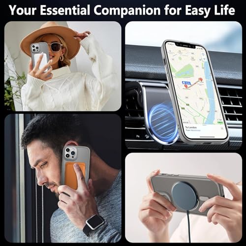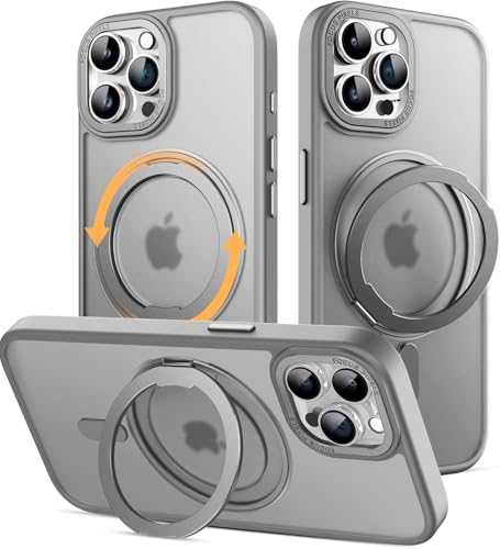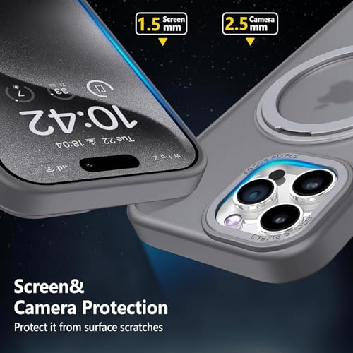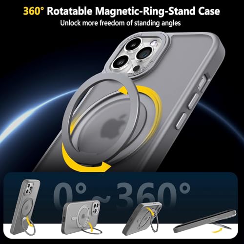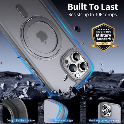 ELMO3EZZ - Case for iPhone 15 Pro (6.1 inches), Shockproof Magnetic Phone Case Cover with 360° Rotatable Kickstand, Compatible with MagSafe Wireless Charger (Matte Grey)