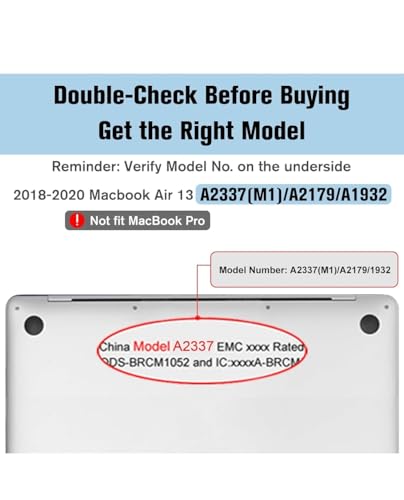 - حافظة لجهاز ماك بوك اير 13 بوصة A2337 (M1) / A2179 / A1932 (إصدار 2022 2021 2020 2019 2018) - غطاء حماية صلب سهل التركيب لجهاز ماك بوك اير 13 شاشة ريتينا مع خاصية التعرف باللمس (كريستال