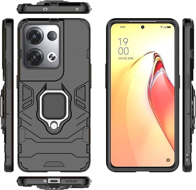 ELMO3EZZ - Case for OPPO Reno 8 Pro Plus/Reno 8 Pro,Hybrid Heavy Duty Protection Shockproof Defender Kickstand Armor Case Cover,Black