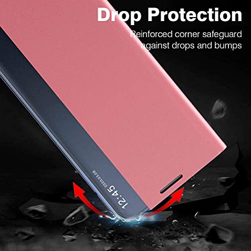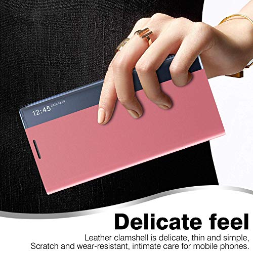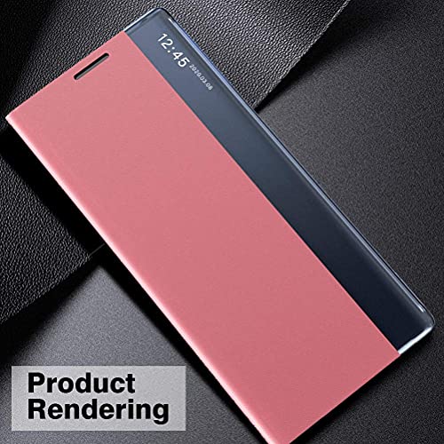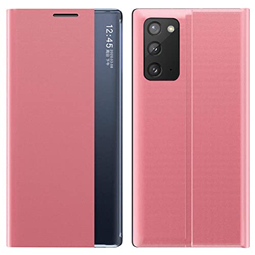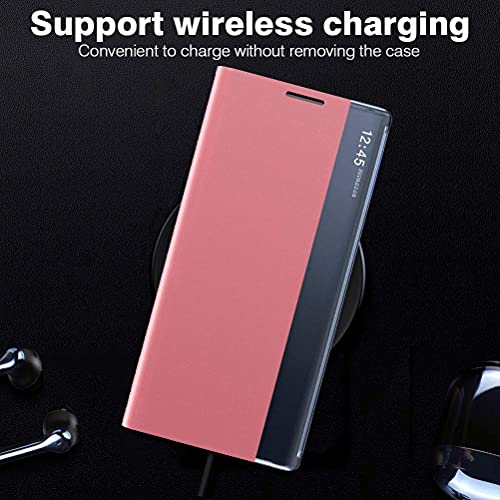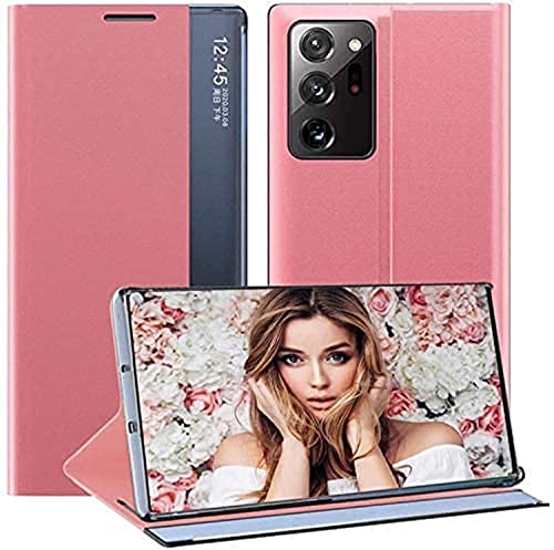 Meweri - جراب من سيليكون اس فيو قابل للطي لموبايل سامسونج جالاكسي نوت 20 الترا، بظهر متين مضاد للصدمات وبتقنية كلير فيو عاكسة لموبايل سامسونج جالاكسي نوت 20 الترا بينكزهري، بني