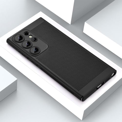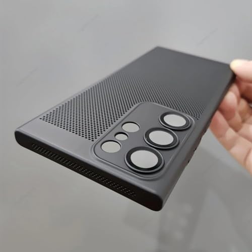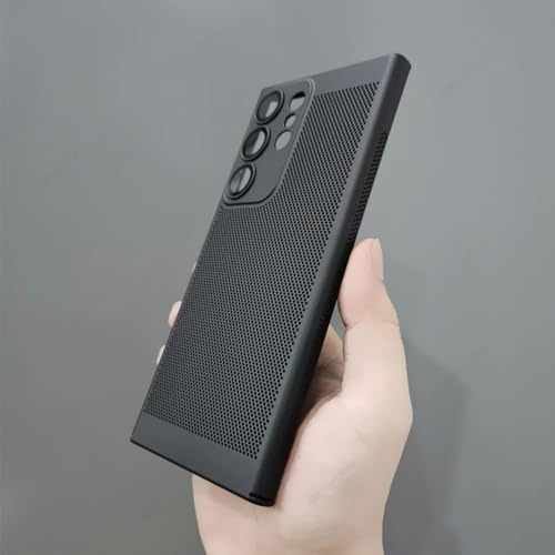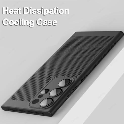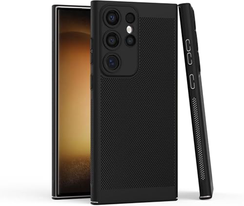 ELMO3EZZ - جراب حماية خلفي صلب ورفيع من البولي كربونات مزود بمسامات للتهوية والتبريد لتبديد الحرارة ومضاد للصدمات والبصمات مع واقي مدمج لعدسة الكاميرا لموبايل سامسونج جالاكسي S23 الترا 6.8 بوصة (لون أسود)