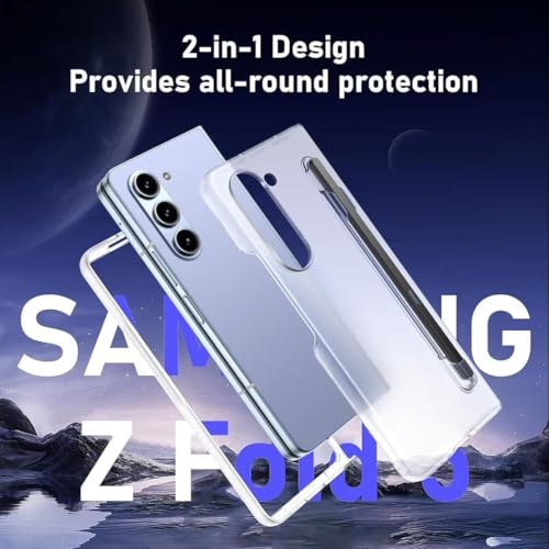 - [متوافق مع] مصمم خصيصًا لموبايل سامسونج جالاكسي زد فولد 3 هيكل من قطعتين جراب شفاف مرن قابل للطي بزاوية 180 درجة مع حامل مدمج لقلم اس بين شفاف ورفيع للغاية.