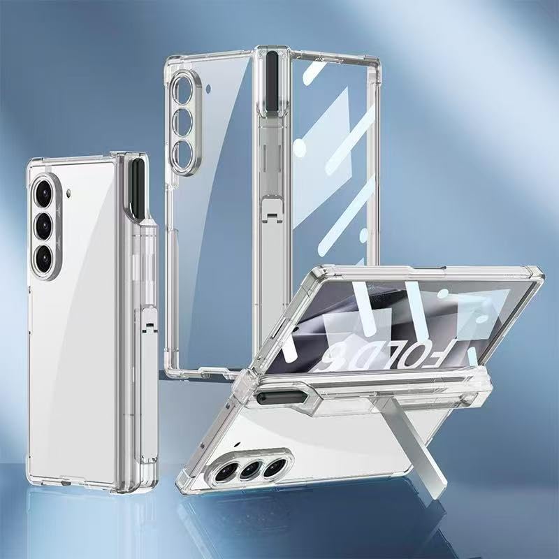 ecosystem - Case for Samsung Galaxy Z Fold 6 Case with S Pen Holder & Magnetic Hinge Protection & Kickstand & Screen Protector, Slim Thin Full Cover Phone Case for Z Fold 6 2024 (Clear)