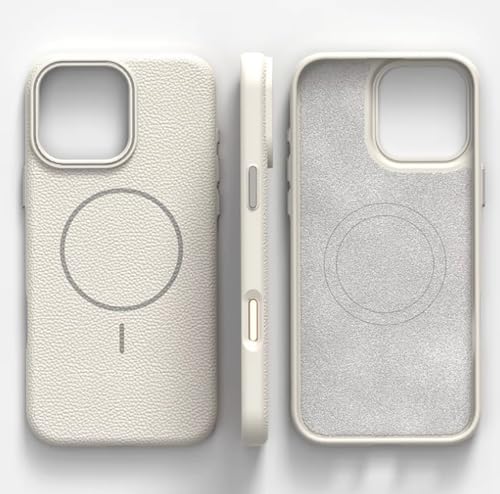 Generic - الرايق Case Soft Lichee Pattern Leather Silicone Compatible with Magsafe Wireless Charge TPU Phone Case Bumper Capa Cover For (Off White, iPhone 16)