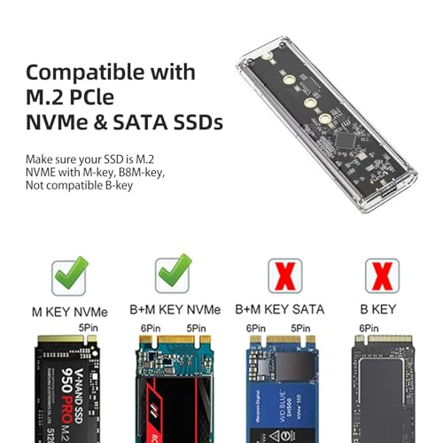 - ✅【Transparent Design with Good Heat Dissipation】Transparent design which is not only sturdy and durable, let you know the working status of the equipment in real time but also provides excellent heat dissipation, giving your SSD the best performance and longer service life.