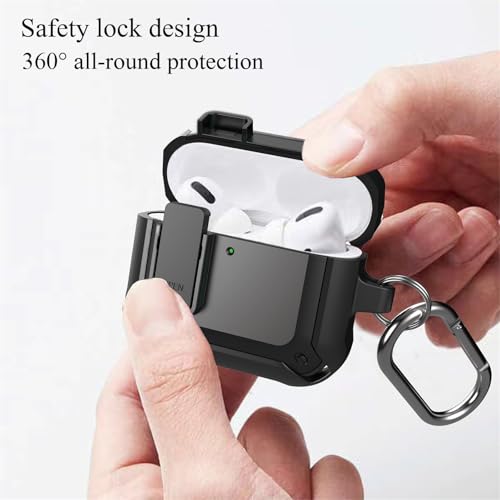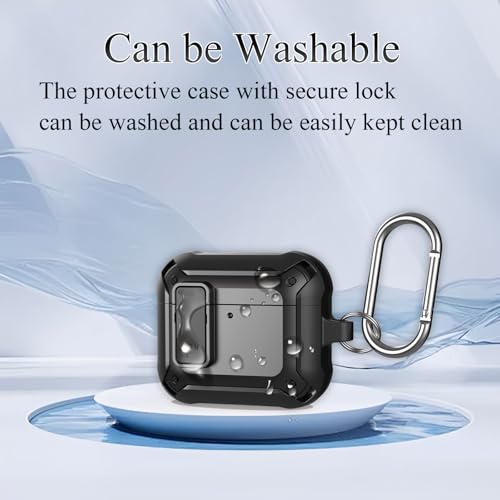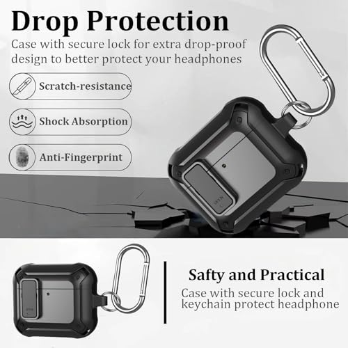 Caselite - Lock Case Compatible with AirPods 4 with Active Noise Cancellation with Keychain, Military Armor Shockproof Wireless Charging Protective Case Cover for Men Women