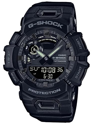 Casio - ساعة رياضية للنساء من كاسيو بعرض أنالوج وسوار من الفولاذ المقاوم للصدأ، لون أسود، موديل GBA-900-1ADR