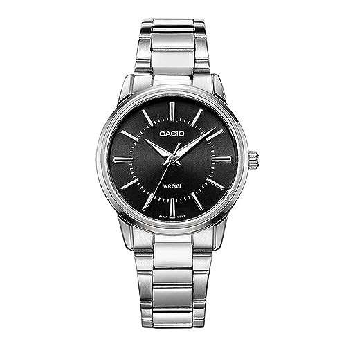Casio - ساعة رسمية انالوج بعقارب للنساء LTP-1303D-1A، بمينا أسود، بسوار فضة