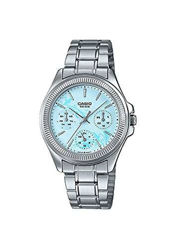 Casio - Casio LTP2088D-2A2V Women's Fluted Bezel Stainless Steel Light Blue Dial Multifunction Dress Watch