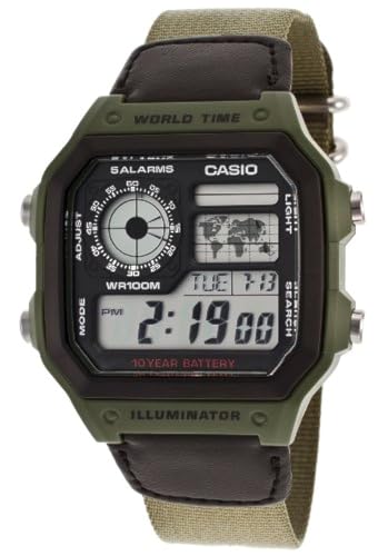 Casio - كاسيو ساعة للرجال بمينا رمادي وسوار قماشي - AE-1200WHB-3BVDF