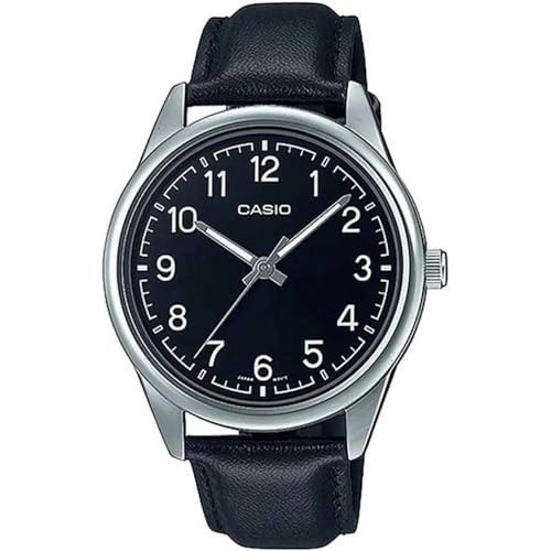 Casio - ساعة يد انالوج بعقارب وسوار من الجلد للرجال لون اسود كاسيو MTP-V005L-1B4UDF