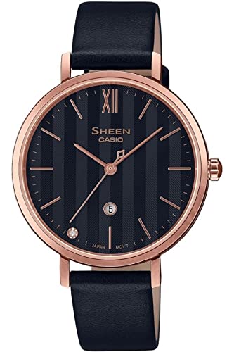 Casio - ساعة شين أنالوج بتصميم نحيف وسوار جلدي بلون ياقوتي للنساء من كاسيو، موديل SHE-4539CGL-1AUDF