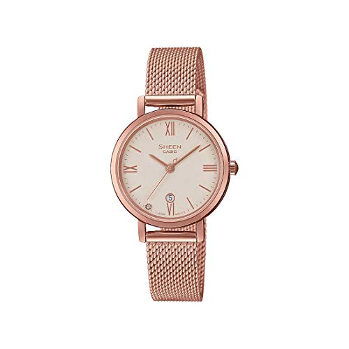 Casio - Casio Sheen SHE-4540CGM-4AUDF Slim Sapphire Stainless Steel Mesh Band Analog Watch for Women's